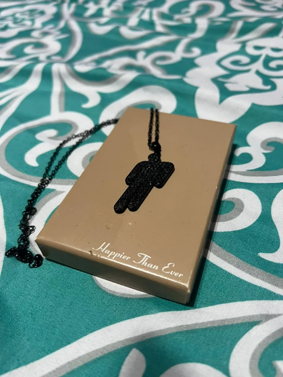 Para completar la experiencia, este collar incluye su caja original de «Happier Than Ever», lo que subraya su autenticidad y valor de colección. ¡No pierdas la oportunidad de añadir esta pieza excepcional a tu colección hoy mismo!